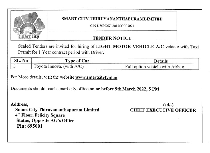 Selection of Contractor for Design, Manufacturing, Supply, Installation and Maintenance of Automated Multilevel Mechanised Parking System at A Block, behind Saphalyam complex, Palayam on EPC Mode ,300 Cars.Click here to Apply Online |