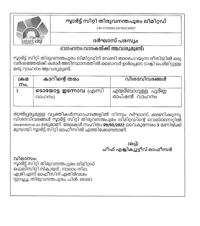 RFP for Selection of Contractor for Design, Supply, Installation, Operation and Maintenance of Electro- Mechanical Car Parking System at Public office on EPC Mode. Apply through kerala E- Tenders Portal etenders.kerala.gov.in |