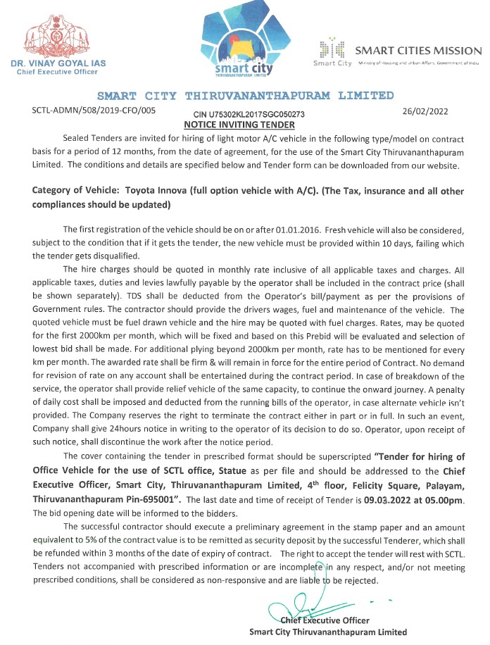 REQUEST FOR QUOTATION- SCTL IS INVITING QUOTATIONS FOR SELECTING AN AGENCY FOR DEEP CLEANING AT VARIOUS PUBLIC PLACES AT THIRUVANANTHAPURAM |