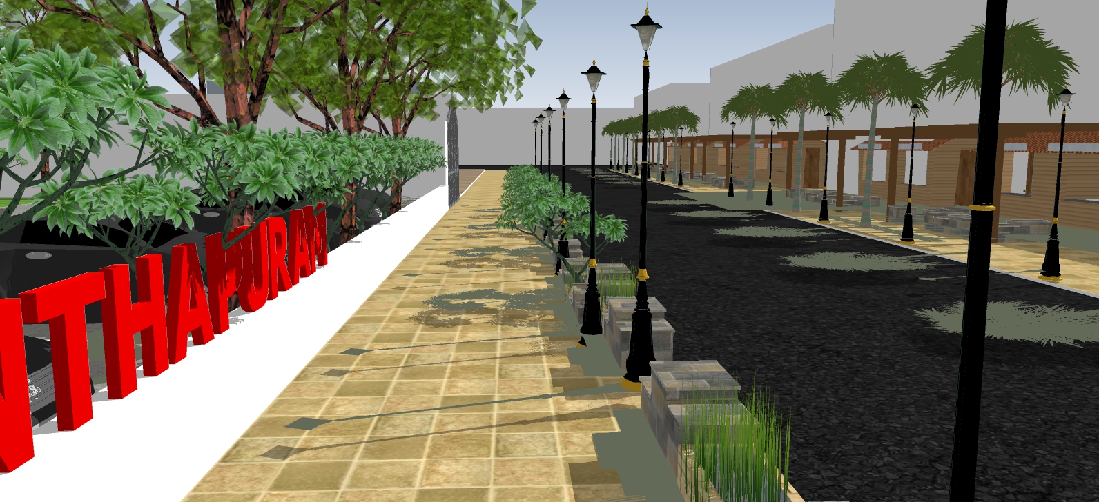 The project ‘Urban Street Haat: Charithra Veedhi’ aims to create a new landmark location for trivandrum city within the East Fort. Sree Chithra Park and a part of the adjacent Taluk Road is being reimagined in this project. The taluk road would be a smart road with a welcoming streetscape envisioned as a food street(food kiosks with seating area). The streetscape is designed as a pedestrian dominant street with wider footpaths.