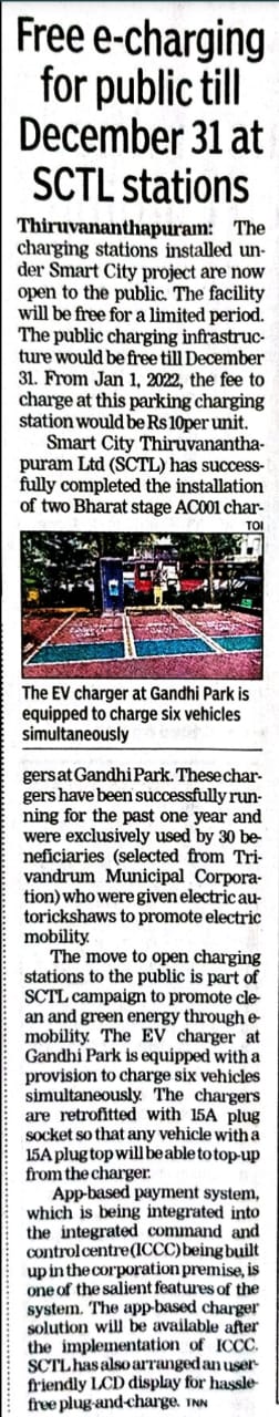Free E Charging For Public Till December 31 At SCTL Stations - The Times Of India